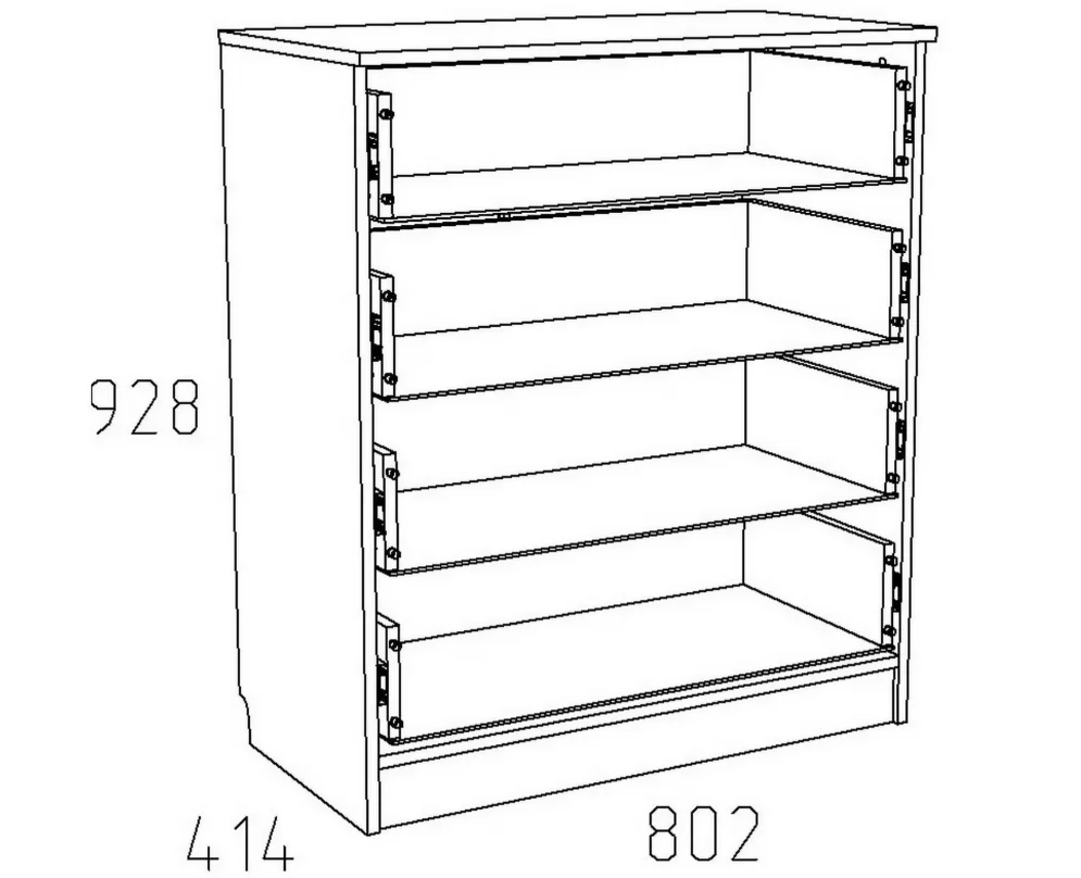 Ширина (мм): 804 Высота (мм): 928 Глубина (мм): 414 Цвет: Капучино/Дуб сонома Материал: ЛДСП Вес, кг: 38.8 Объем, м3: 0.076 Количество упаковок: 2 Гарантия: 24 месяца Коллекция: Акварель Направляющие: Шариковые, полного выдвижения Ручка: С-31, пластиковая с цветной вставкой