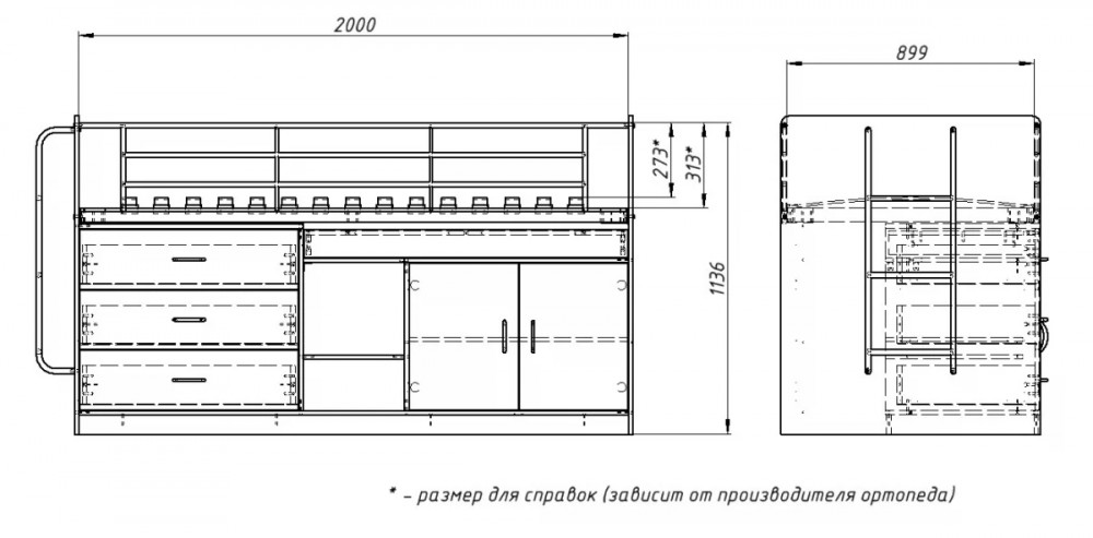 Размер спального места: 900х2000 мм