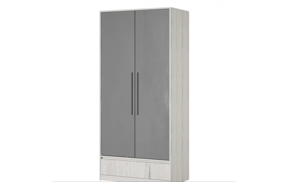 Шкаф двухстворчатый с выдвижным ящиком снизу позволит вместить все вещи подростка в одно место. Изделие оснащено 5 полками, 1 штангой и 1 ящиком.
