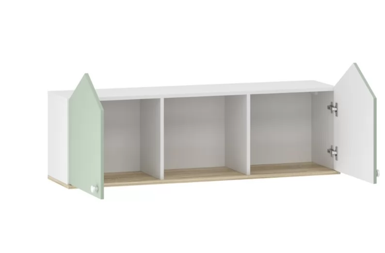 Оригинальный дизайн в виде домиков придаст интерьеру уникальность. Скругленные ручки на ящиках и дверцах делают мебель безопасной для детей.