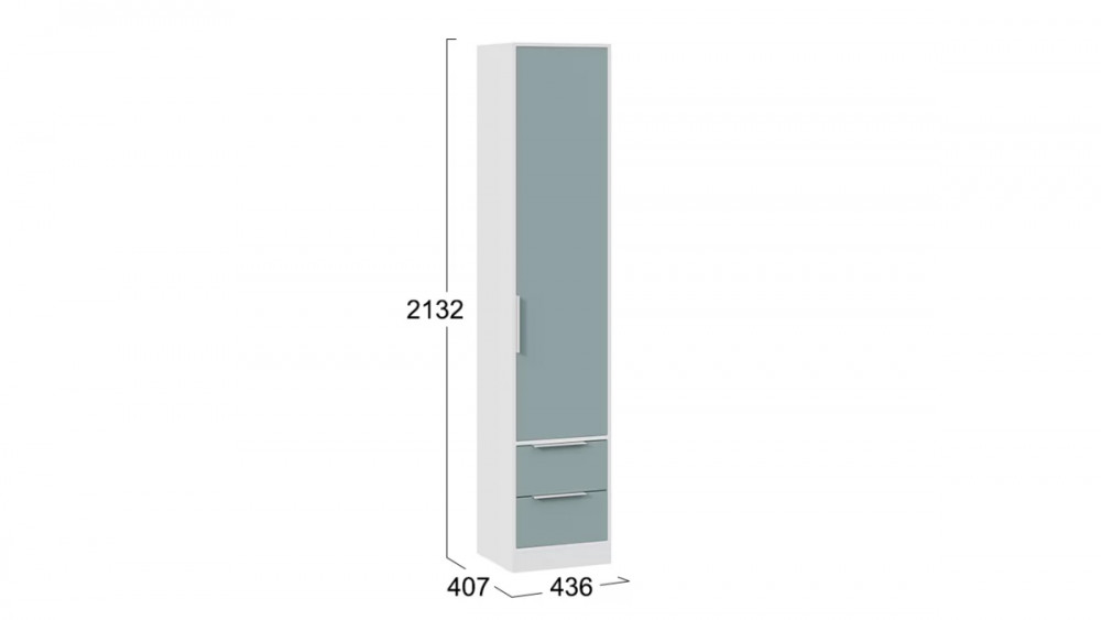 Назначение: Мебель для хранения Количество дверей: 1 Гарантийный срок: 24 месяца Комната использования: Молодежная, Офис Материал кромки каркаса: ПВХ Стиль: Современный Тип шкафа: Шкаф с распашными дверями, Шкаф с выдвижными ящиками Материал кромки фасада: ПВХ Тип: Шкаф комбинированный Расположение: Напольный Тип направляющих ящиков: Шариковые Наполнение: Полки ЛДСП, Ящики Материал каркаса: ЛДСП Направление открытия двери: Определяется при сборке Материал ручек: Металл Производство: Россия Габаритная ширина: 436 Габаритная высота: 2 132 Форма предмета: Прямоугольный Габаритная глубина: 407 Количество ящиков: 2 Модель: Марли (корпус) Срок службы: 5 лет Материал фасада: ЛДСП Оттенок: Белый, Голубой Цвет: Белый, Серо-голубой Цвет каркаса: Белый (поры дерева) Цвет фасада: Белый (поры дерева), Серо-голубой Оттенок каркаса: Белый Оттенок фасада: Белый, Голубой Тип сборки: Универсальный левый/правый Наличие механизма раскладки: Нет Наличие спального места: Нет