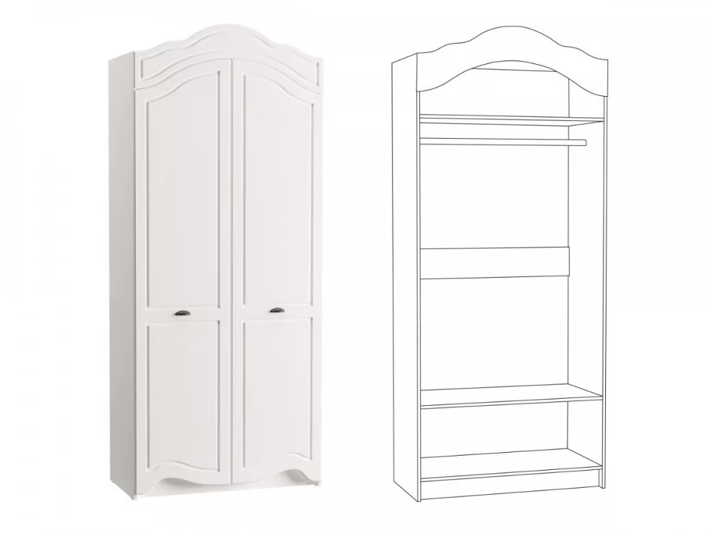 Шкаф двухстворчатый Роуз 13.195 будет отличным дополнением интерьера уютной детской. Изделие поможет разместить весь гардероб вашего ребенка. За двумя распашными дверьми находится широкая штанга для вешалок-плечиков с безупречно выглаженной одеждой. Антресольная и нижняя полки предназначены для хранения одежды, постельного и нижнего белья, различных аксессуаров и коробок с обувью.