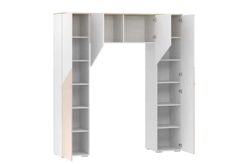 Шкаф комбинированный НМ 041.45 Банни представляет собой 2 шкафа для одежды соединённых между собой навесной полкой с двумя дверцами.