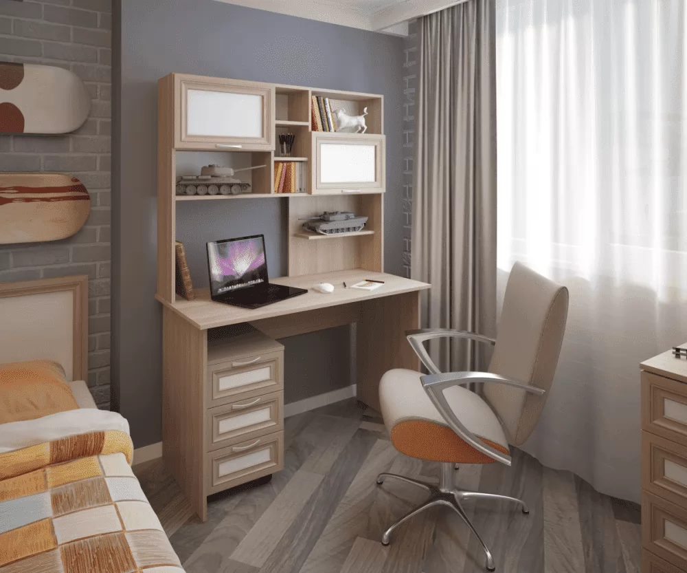 Особенности изделия: Стол, как прямой типовой, может быть дополнен Тумбой на колесных опорах М19 и Полкой М16, т.к. имеет вместе с последней одинаковую ширину, равную 1200 мм. В столешнице присутствуют скрытые технологические отверстия, которые позволяют установить на нее Надстройку стола М14 и получить компактное, но функциональное рабочее место.
