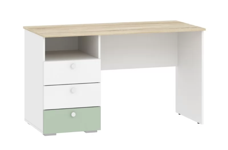 Одним из важнейших принципов развития ребенка является обустройство его рабочего места, где школьник сможет выполнять уроки, заниматься творчеством и любимым хобби. Письменный стол НМ 041.40 «Банни» с тумбой позволит оформить в спальне рабочий уголок в скандинавском стиле. Данная модель дополнена небольшим модулем из трех выдвижных ящиков и открытой ниши. Вместительная полка под рабочей поверхностью прекрасно подходит для книг и тетрадей. Тумбу с ящиками возможно разместить как в левой, так и в правой части изделия в зависимости от предпочтений ребенка. Ящика с удобными ручками легко выдвигаются, предоставляя полный доступ к содержимому и позволяя быстро найти необходимый предмет.