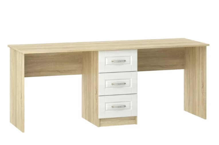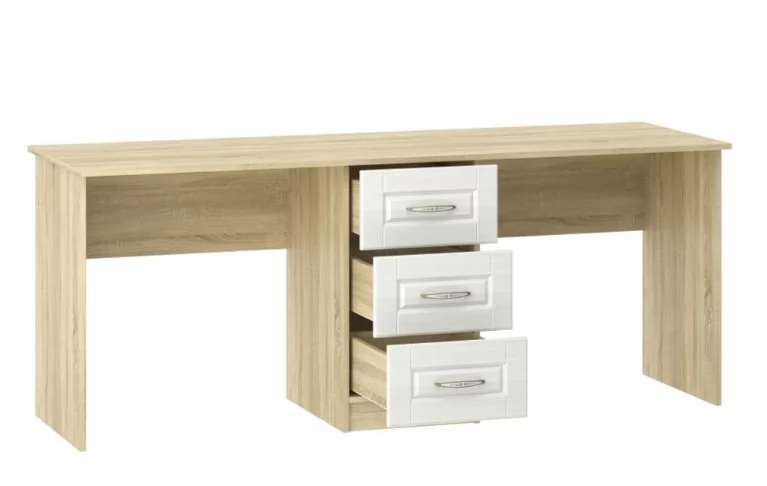 Стол НМ 041.37 Оливия предназначен для тех, кто любит практичность и комфорт. Стол обладает модным сочетанием материалов, цветов и подчеркивает настроение детства – радость новизны и жажду открытий. Уникальная конструкция стола поможет обустроить комфортный учебный уголок, если в семье двое детей. На рабочей поверхности модуля достаточно места для размещения не только письменных принадлежностей, но и ноутбука. Закругленные углы столешницы делают эксплуатацию модуля безопасной для детей. По окончании занятий ребенок сможет убрать книги и тетради в выдвижные ящики для поддержания порядка на рабочем месте.
