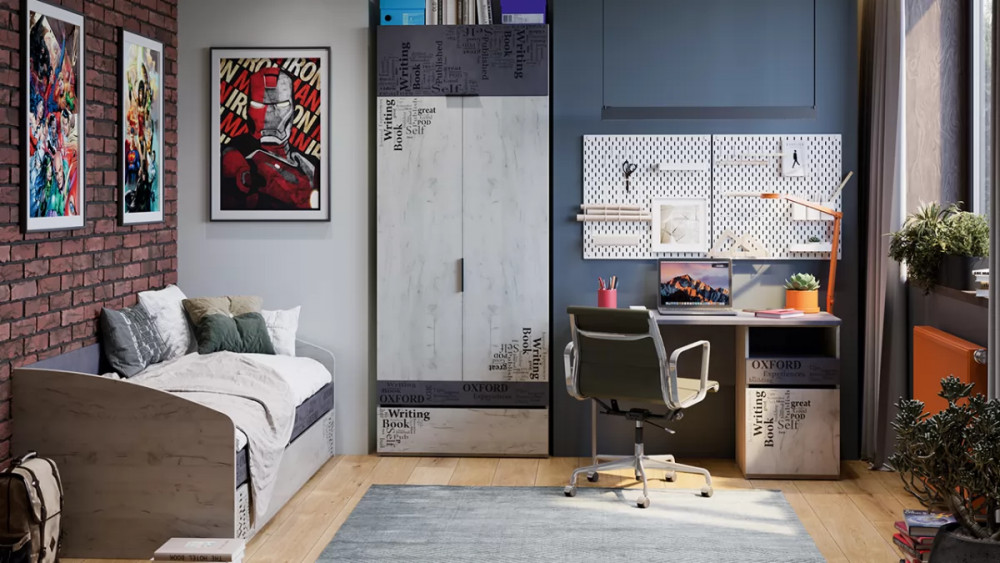 Шкаф комбинированный для одежды «Оксфорд-2» Матера, Дуб крафт белый с рисунком