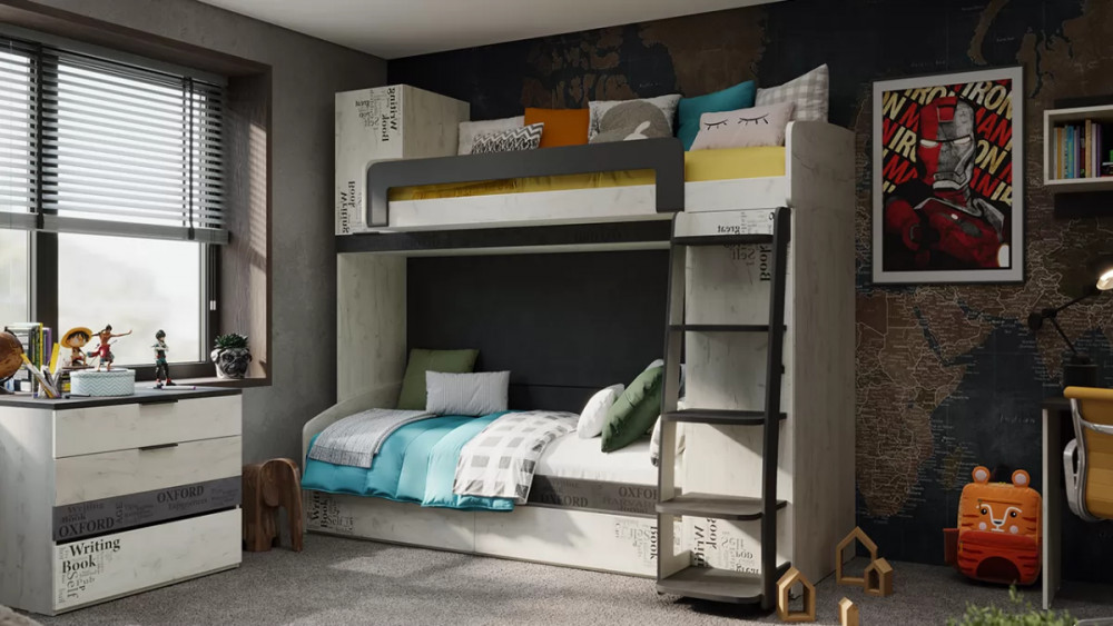 Кровать с 2 ящиками «Оксфорд-2» Матера, Дуб крафт белый с рисунком