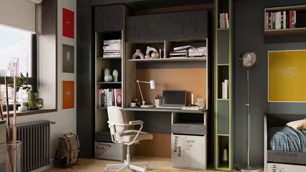 Набор детской мебели «Лео» №2 Гикори джексон/Белый матовый/Дымчатый зеленый