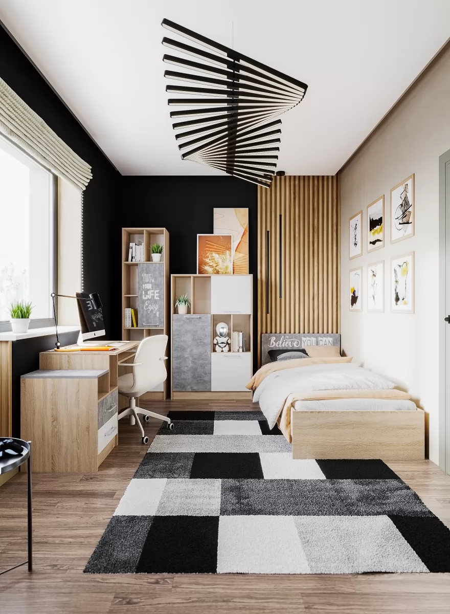 — Колибри Лофт – гарнитур с ультрасовременными фасадами «Ателье Светлое», декорированными белым принтом, нанесенным методом фотопечати. Материал для фасадов «Акрил Белый»– уникальные высокоглянцевые панели HIGH GLOSS. Спальня комплектуется стильной металлической фурнитурой.