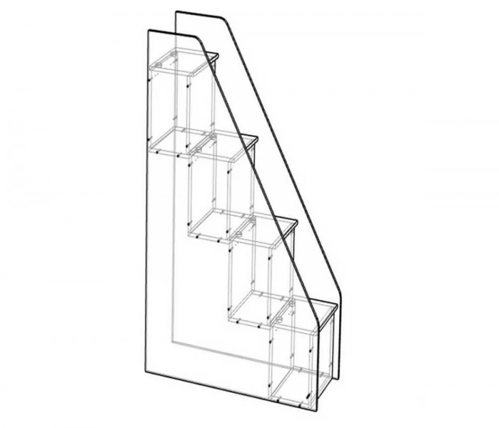 — В лестнице четыре ступеньки, используются, как шкафчики, открываются кверху, три нижних ступени одинакового размера, четвертая (верхняя) немного поменьше.
