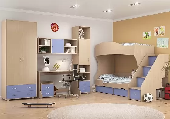 Модульная система "Дельта" включает множество разнообразных и функциональных предметов интерьера для детской или подростковой комнаты. Большой выбор модулей позволяет обставить помещение любого размера, рассчитанного на одного или двух детей. Выполненная в пастельных тонах удобная и практичная мебель подойдет как девочкам, так и мальчикам.