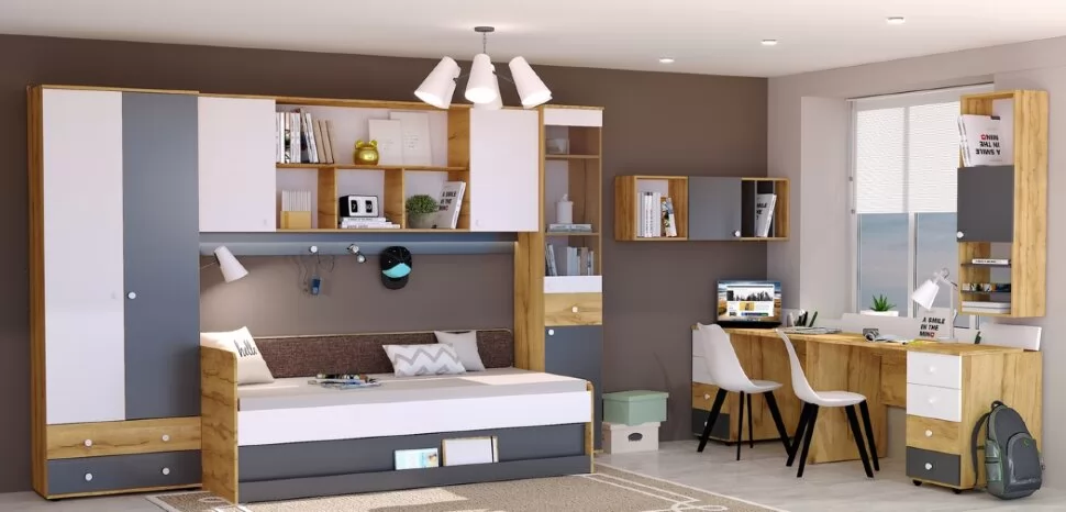 «Функциональность во всем!» – именно так можно описать новую коллекцию Глазовской мебельной фабрики.Все элементы коллекции ЛОЙС детально проработаны, надежны, безопасны, при этом выглядят ярко и максимально привлекательно для детей, помогают им подчеркнуть свою индивидуаль - ность, а также создать стильный, неповторимый и запоминающийся интерьер.Модная цветовая палитра: сочетание Белого, Графита и теплого древесного декора Дуб Золотистый, многофункциональные модули, множество «фишек» - отличная почва для творчества и самовыражения подростка или детей младшего возраста.Меняйте цвета фасадов шкафов, выбирая Белый или Графит, переставляйте выдвижные ящики местами меняйте пространство под себя. Все модули рекомендуем крепить к стене за подвесы.Материал: ЛДСП