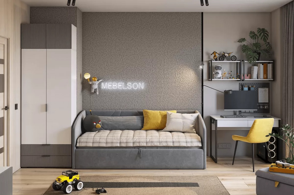 В состав комплекта входят следующие модули: Зефир Антресоль двухдверная 118.01 Зефир Шкаф двухдверный 120.01 Кровать с подъемным механизмом Бест 90х200 см Полка Юниор - 2 шт. Стол Юниор