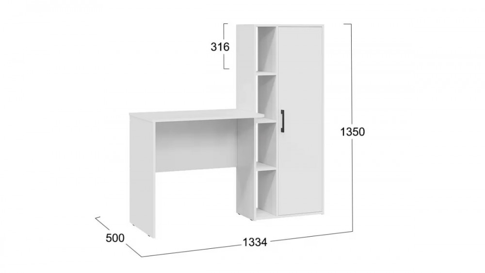Назначение: Мебель для работы и приема пищи Количество дверей: 1 Гарантийный срок: 24 месяца Комната использования: Молодежная Материал кромки каркаса: ПВХ Стиль: Современный Тип: Компьютерный стол Расположение: Напольный Материал каркаса: ЛДСП Материал ручек: Пластик Производство: Россия Габаритная ширина: 1 334 Габаритная высота: 1 350 Форма предмета: Прямоугольный Габаритная глубина: 500 Модель: Бейли Срок службы: 5 лет Материал фасада: ЛДСП Цвет: Белый Ясень Цвет каркаса: Белый Ясень Цвет фасада: Белый Ясень Оттенок каркаса: Белый Оттенок фасада: Белый Тип сборки: Не универсальный Наличие механизма раскладки: Нет Наличие спального места: Нет