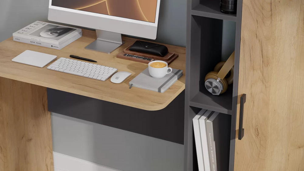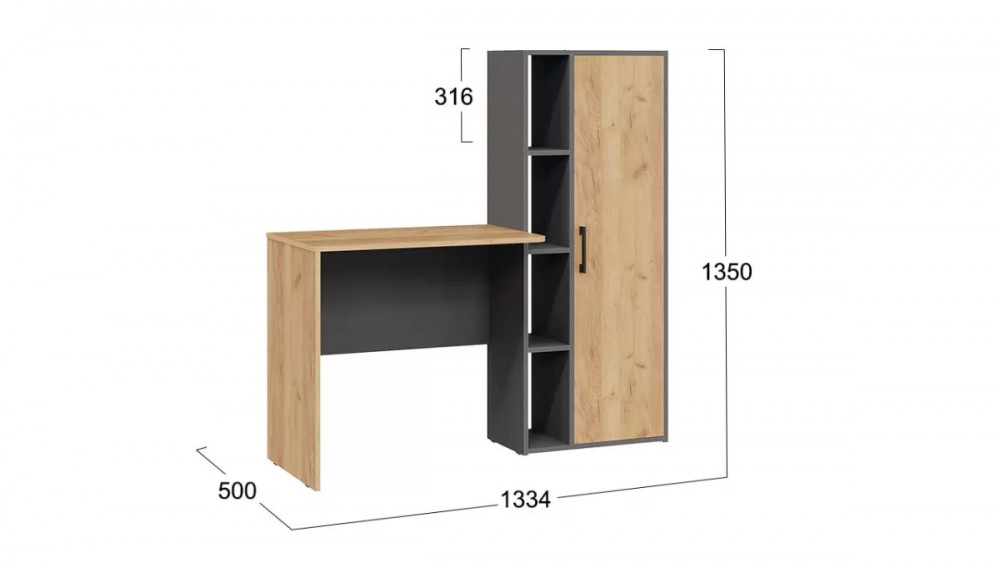 Назначение: Мебель для работы и приема пищи Количество дверей: 1 Гарантийный срок: 24 месяца Комната использования: Молодежная Материал кромки каркаса: ПВХ Стиль: Современный Тип: Компьютерный стол Расположение: Напольный Материал каркаса: ЛДСП Материал ручек: Пластик Производство: Россия Габаритная ширина: 1 334 Габаритная высота: 1 350 Форма предмета: Прямоугольный Габаритная глубина: 500 Модель: Бейли Срок службы: 5 лет Материал фасада: ЛДСП Цвет: Графит Серый, Дуб Крафт золотой Цвет каркаса: Графит Серый Цвет фасада: Дуб Крафт золотой Оттенок каркаса: Серый Оттенок фасада: Коричневый Тип сборки: Не универсальный Наличие механизма раскладки: Нет Наличие спального места: Нет
