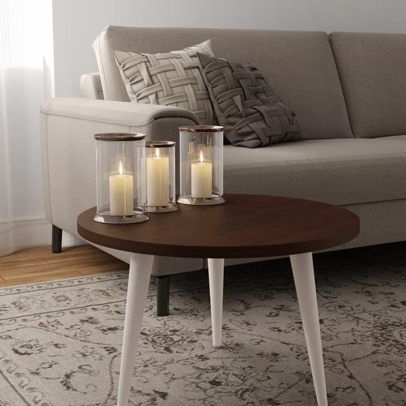 Круглый Норвуд 16 Стол журнальный - легкий по весу и мобильный помощник. Гармоничное сочетание темной столешницы в декоре Орех шоколадный и светлых ножек из массива дерева сделает вашу гостиную еще уютней.
