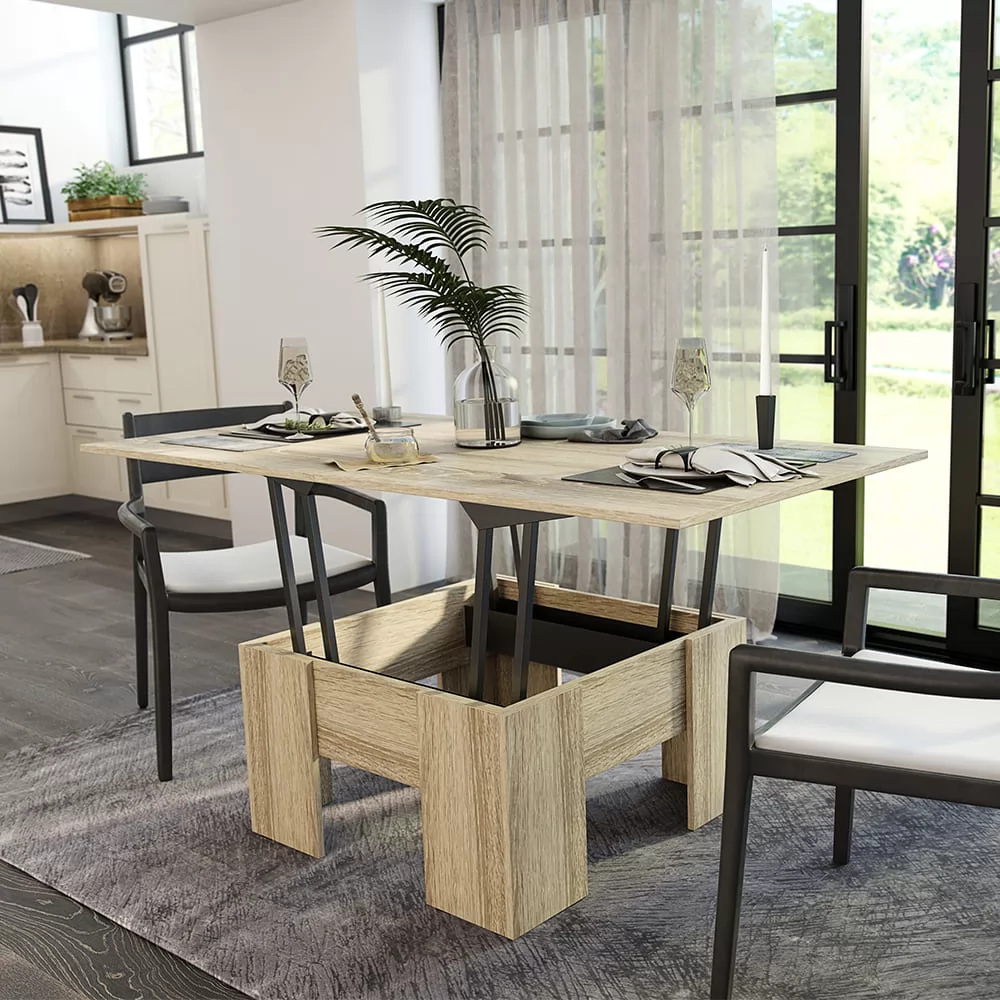 - модель будет прекрасно смотреться в гостиной, а к приходу гостей – с легкостью превратиться в полноценный стол, - изделие выполнено из ЛДСП в светлом цвете дуб сонома, - конструкция очень проста в использовании и не доставит вам сложностей при раскладывании.