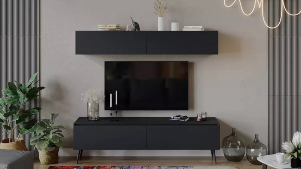 Тумба для теле- и радиоаппаратуры «Глосс» Яблоня Беллуно/Cтекло Графит матовый