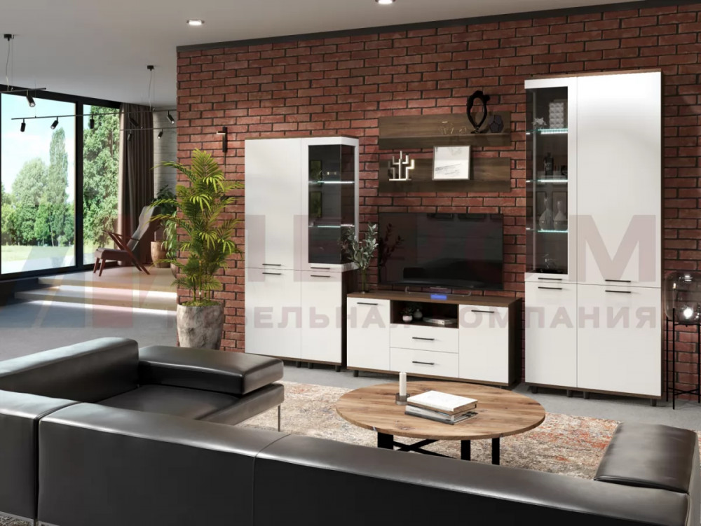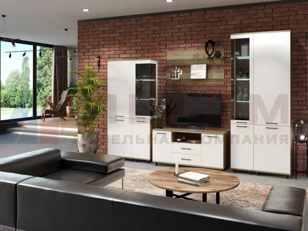 СИДНЕЙ-1 Центральная секция (ш1850*г430*в2000мм), ЛДСП Белый/ЛДСП Ателье светлое