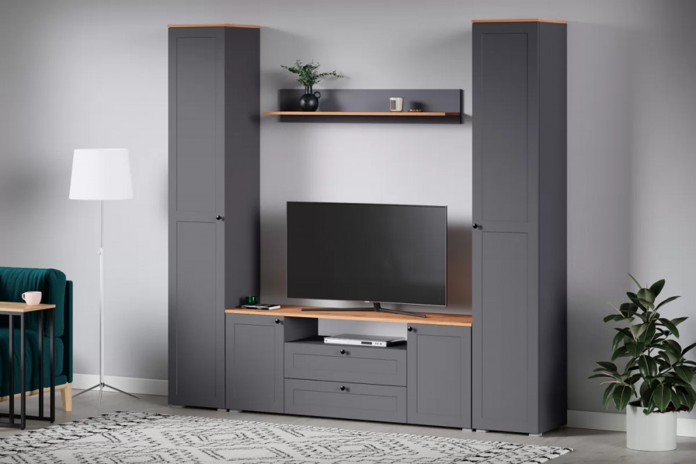 Остин – гостиная в современном классическом стиле. Лаконичность, строгие линии, контрастная фурнитура, функциональность и элегантность – отличительные черты этой коллекции.
