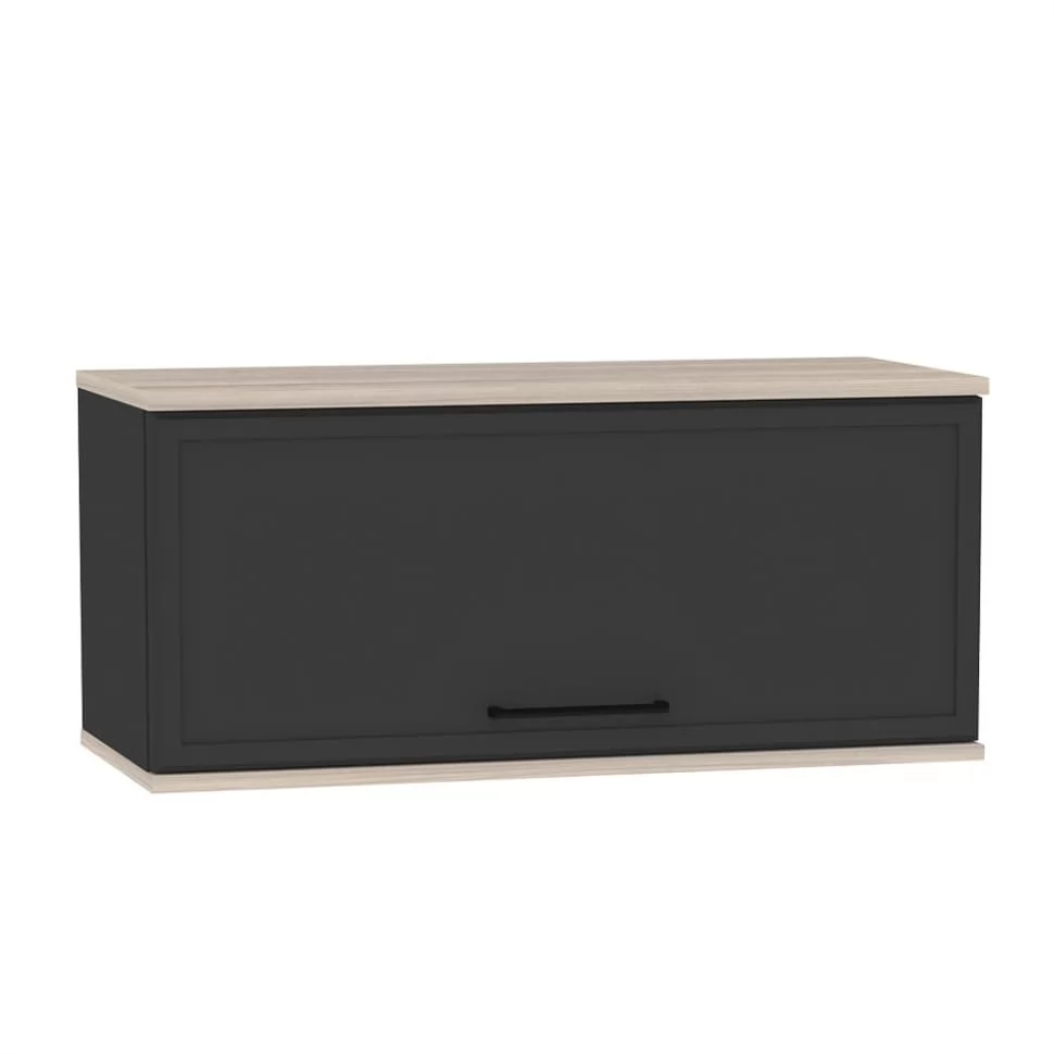 Ширина (мм): 800 Высота (мм): 367 Глубина(мм): 355 Цвет корпуса: Белый-Блеквуд Сатиновый, Антрацит-Блеквуд Сатиновый Ручка-скоба металлическая (черный матовый) нагрузка на полку (кг): до 10 Материал корпуса: ЛДСП Материал фасада / вставок: ЛДСП