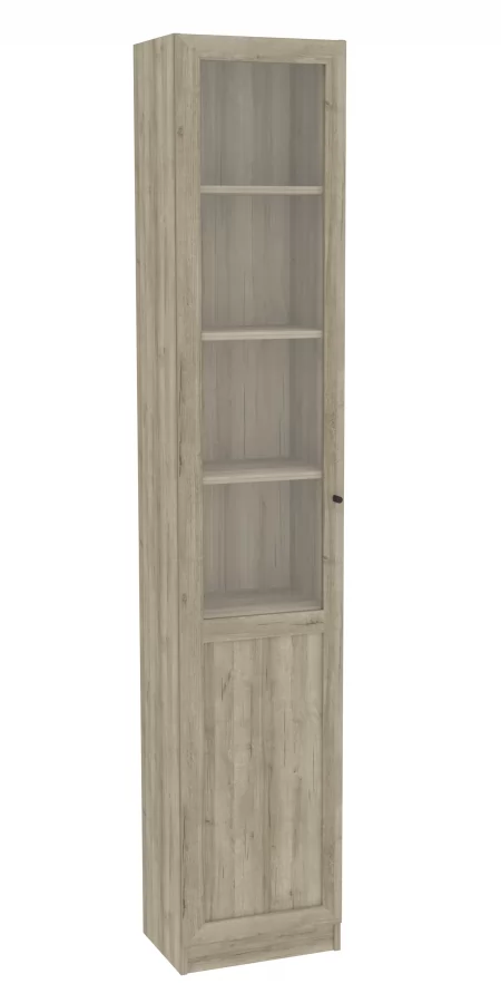 Книжный шкаф высотой 2107 мм поможет правильно организовать хранение книг и документов. Стеклянный фасад перенавешивается, это облегчит задачу при создании компоновки из шкафов в зависимости от планировки. За стеклянным фасадом из закаленного прозрачного стекла регулируемые по высоте полки из ЛДСП, что позволит разместить литературу различного формата. Книжный шкаф обязательно крепить к стене!