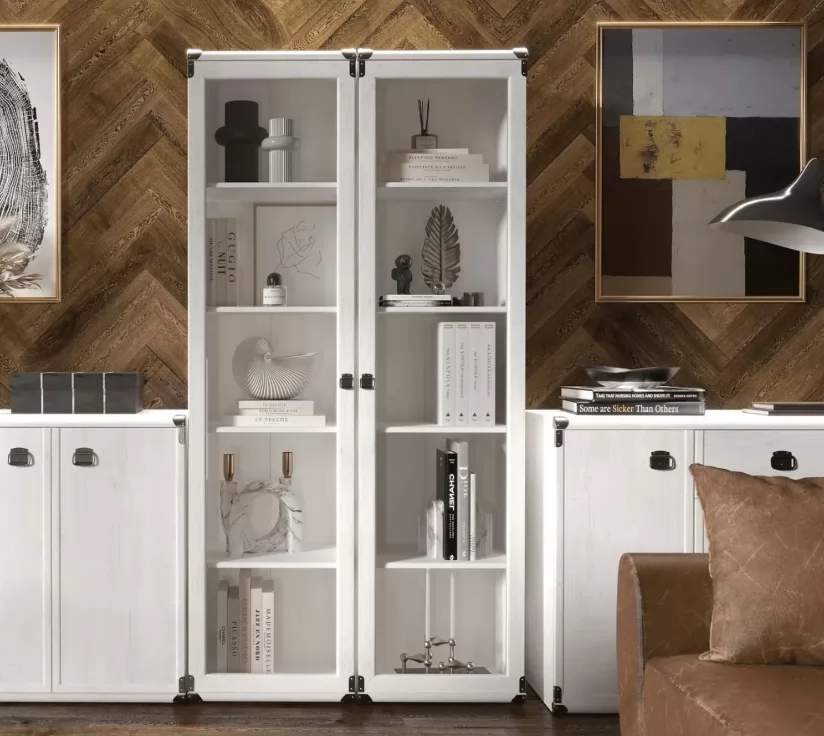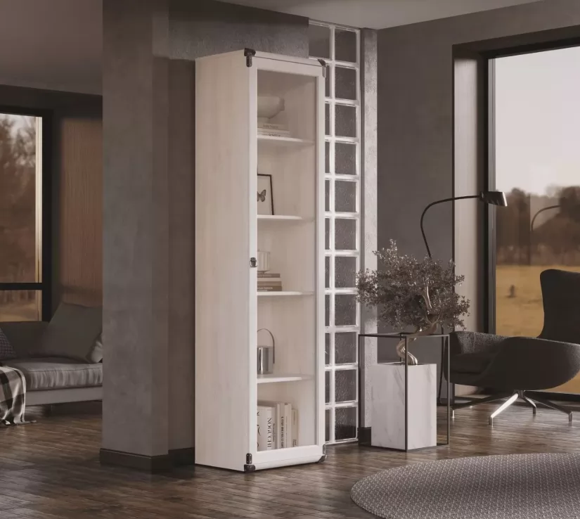 Шкаф - витрина ИНДИАНА JWIT 1d в цвете «сосна каньон» — это сочетание природной красоты и современного стиля. Металлические элементы подчеркивают его строгий и элегантный вид, а выразительная текстура древесины создает ощущение тепла и уюта. Изготовленный из качественных материалов класса эмиссии ЛДСП E0.5, этот шкаф станет надежным хранителем ваших вещей.