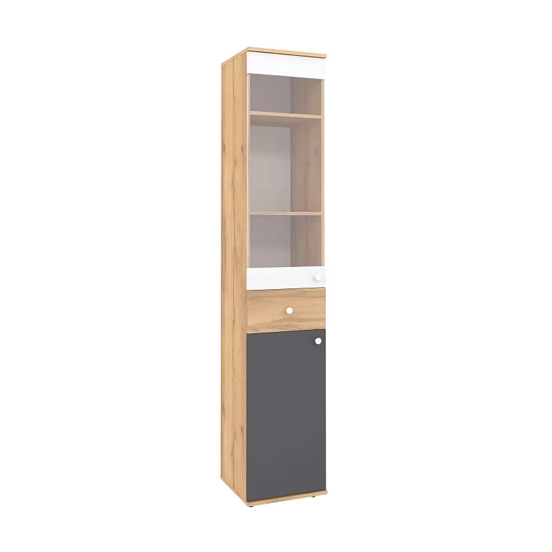 Ширина (мм): 400 Высота (мм): 2113 Глубина (мм): 400 Материал: ЛДСП Цвет: Дуб Золотистый/Белый/Графит Коллекция: Лойс
