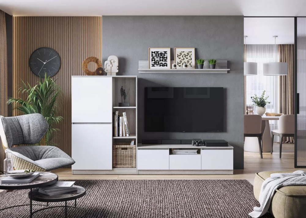 Шкаф для книг Лори, 950 мм, дуб серый/белый в Советском