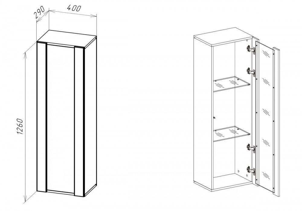 Размеры (ШхВхГ): 400 х 1260 х 290 мм