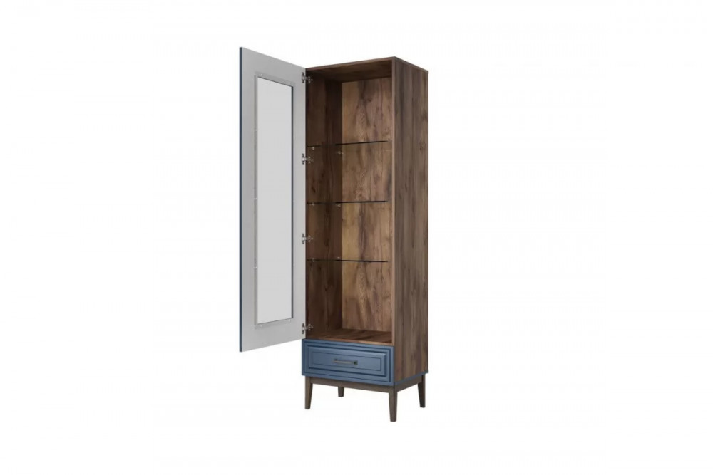 Длина: 459 мм Ширина: 600 мм Высота: 2000 мм Срок службы: 4 года Гарантийный срок: 24 месяца Монтаж: Требует сборки Фрезеровка фасада: Да Количество стеклянных полок: 3 шт Материал фасада: МДФ Материал корпуса: ЛДСП Материал полок: Стекло 4 мм Материал опоры: Массив Количество дверей: 1 шт Фурнитура: Петли с доводчиком, шариковые направляющие полного выдвижения Коллекция: Гостиная «Гориция» Сапфировый Цвет корпуса: Таксус Цвет фасада: Лак Сапфировый Количество вкладных полок: 3 шт Количество выдвижных ящиков: 1 шт Задняя стенка:: ЛДСП (Таксус)