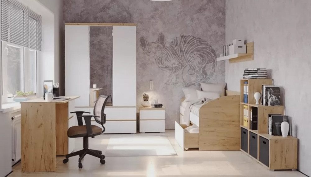 ГРЕТТА Кровать-софа с ящиками (сп/м 900*2000мм), ЛДСП дуб крафт золотой/ЛДСП белый