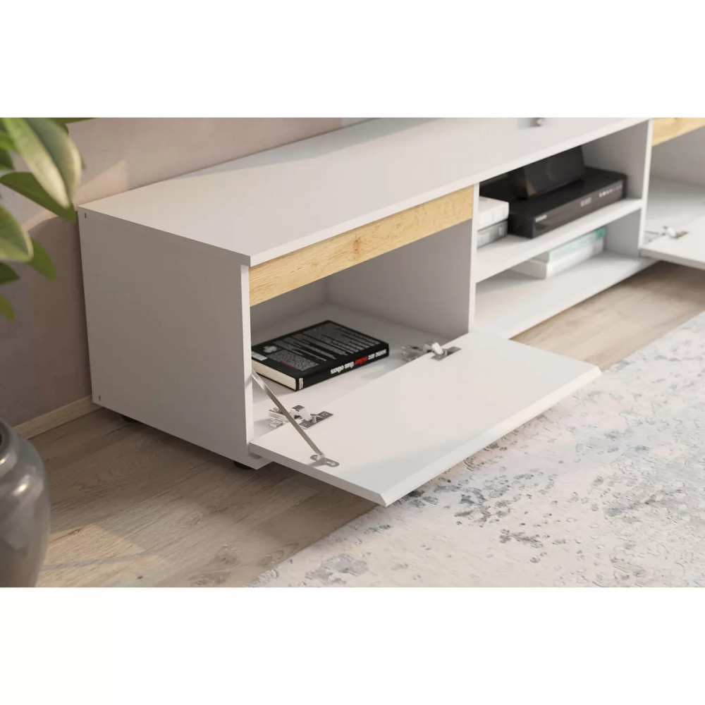 Элегантная гостиная НК BRUNO в сочетании белоснежного фасада и благородного дуба Вотан станет истинным украшением вашего дома. Стильный дизайн создает неповторимый стиль, который органично впишется как в традиционный, так и в современный интерьер. Гармоничное сочетание матового белого цвета с теплым древесным рисунком создает атмосферу уюта и простора. Продуманная эргономика позволяет максимально эффективно использовать пространство комнаты. Высококачественные материалы и надежная фурнитура гарантируют долговечность и сохранение внешнего вида на протяжении многих лет.