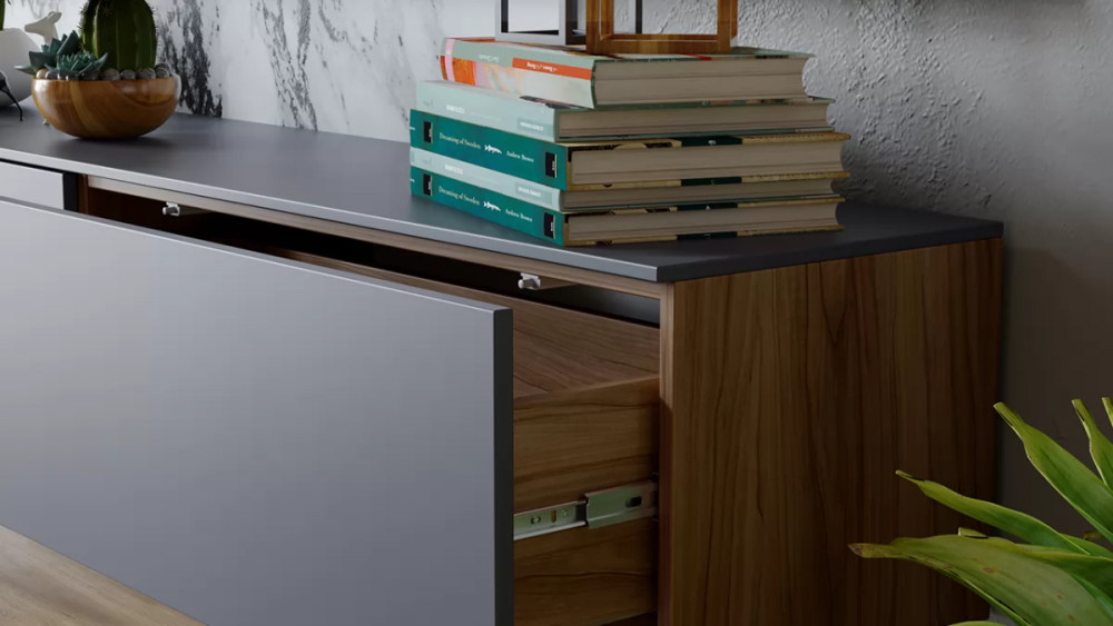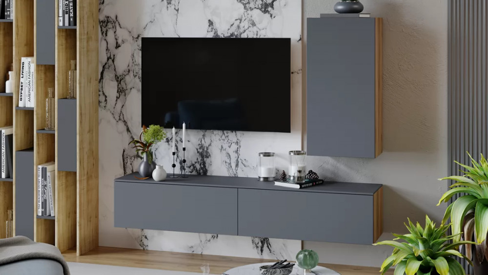 Модульная гостиная «Порто» Яблоня Беллуно, Графит софт в Советском