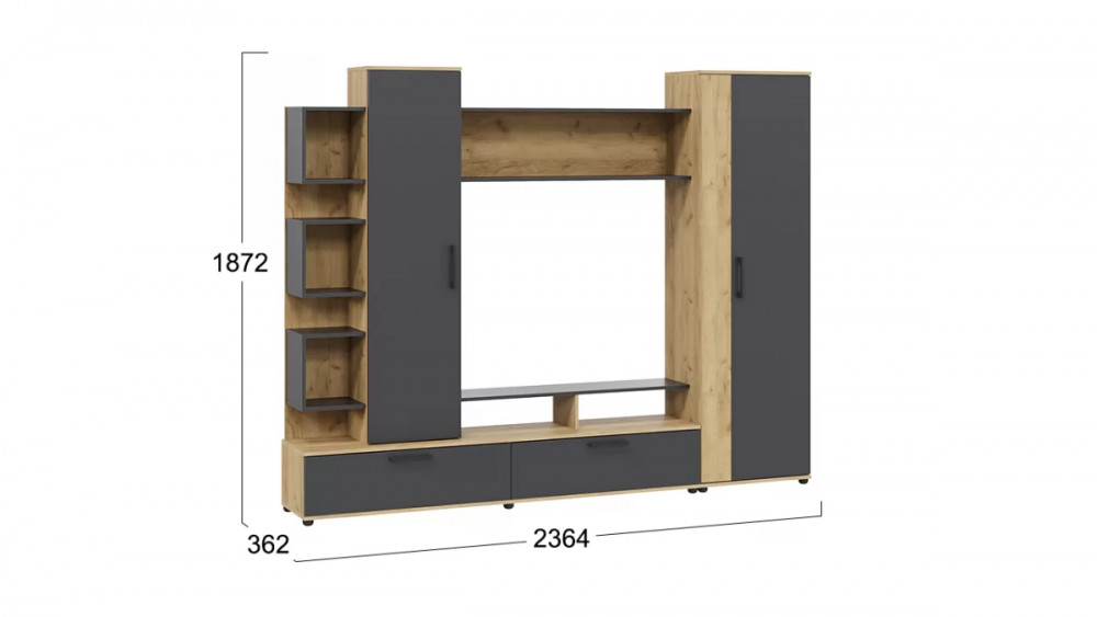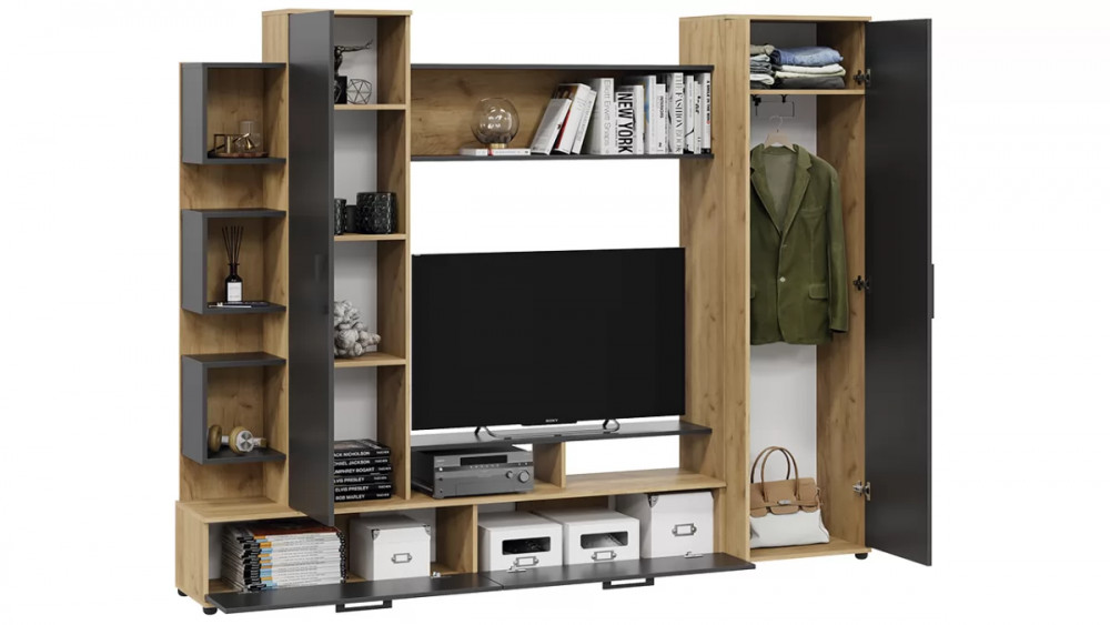 Стенка «Дакота» Дуб Крафт золотой, Антрацит в Советском