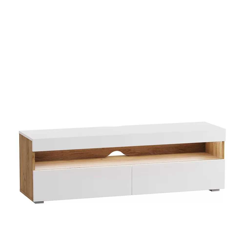 Тумба для бытовой аудио и видеотехники"Альба 3" имеет две две открытые ниши и два вместительных выдвижных ящика.