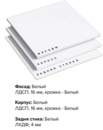 • Фасад: Белый ЛДСП, 16 мм, кромка - Белый