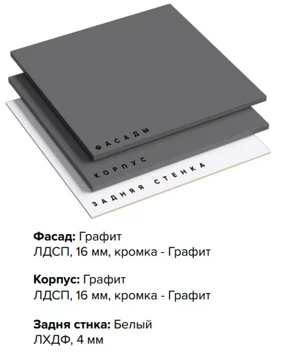 • Корпус: Графит, ЛДСП, 16 мм, кромка - Графит
