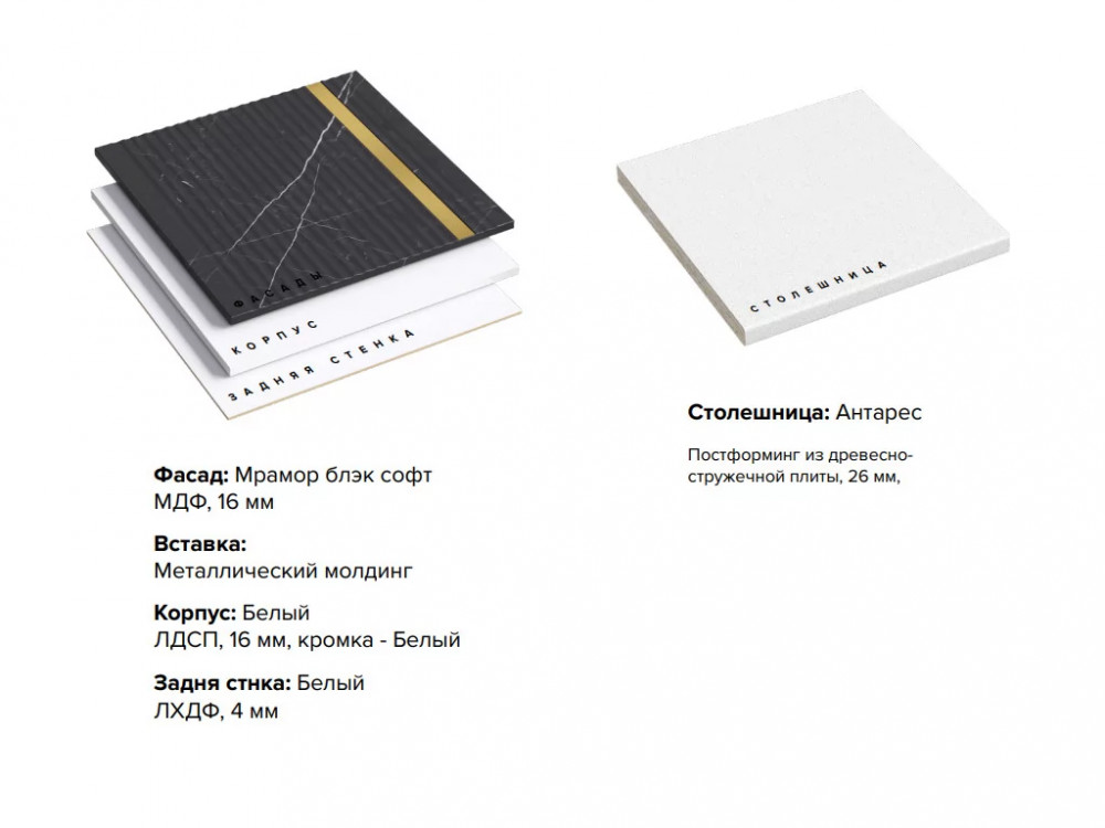 • Фасад: Мрамор Блэк софт МДФ, 16 мм