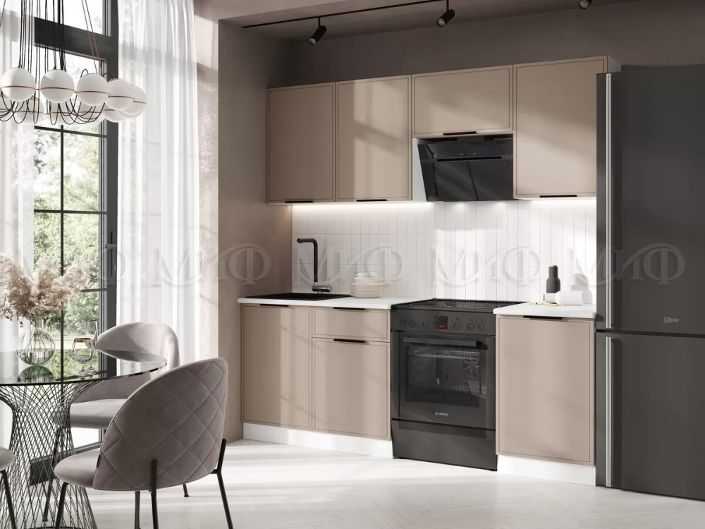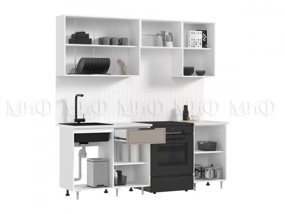 ВЕРХНИЕ МОДУЛИ: (ШхВхГ) 2100х718х300 мм НИЖНИЕ МОДУЛИ: (ШхВхГ) 2100х850х600 мм С учетом высоты опор и столешницы. Цоколь не входит в комплект готового решения. Есть возможность установки пластикового цоколя, который докупается отдельно.