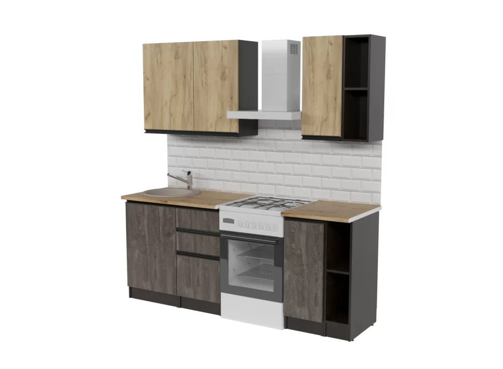 Кухонный гарнитур Адажио медиум из ЛДСП в модном цвете "Дуб золотой" впишется в современный дизайн интерьера. Подойдет как для частного дома, так и для небольшой квартиры. Напольные и подвесные шкафы позволят разместить всю кухонную утварь. Гарнитур состоит из набора шкафов, которые органично комбинируются между собой. Ящики, полки, навесные шкафы, тумбы и пеналы можно менять местами, создавая практичное рабочее пространство.