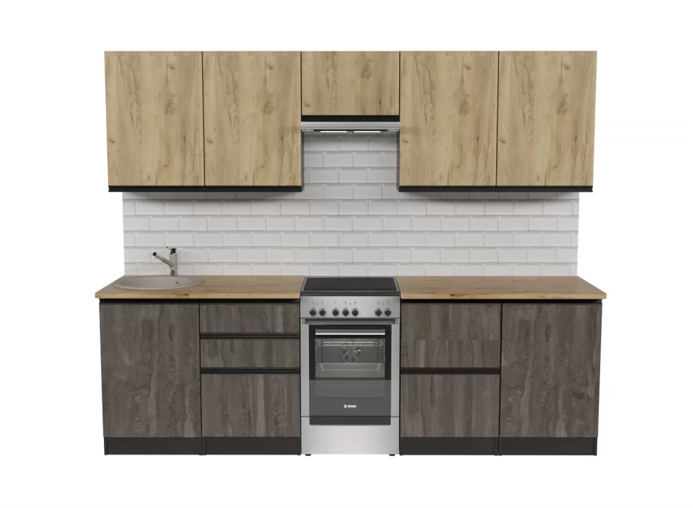 Кухонный гарнитур Адажио мега из ЛДСП в модном цвете "Дуб золотой" впишется в современный дизайн интерьера. Подойдет как для частного дома, так и для небольшой квартиры. Напольные и подвесные шкафы позволят разместить всю кухонную утварь. Гарнитур состоит из набора шкафов, которые органично комбинируются между собой. Ящики, полки, навесные шкафы, тумбы и пеналы можно менять местами, создавая практичное рабочее пространство.