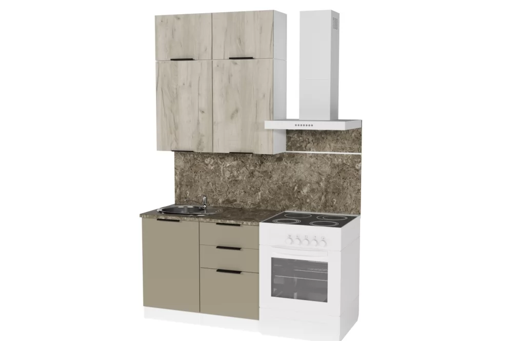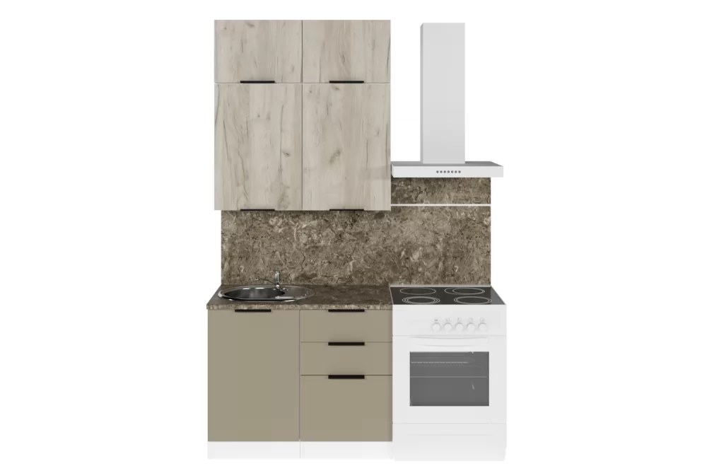 Кухонный гарнитур Альба мини из ЛДСП в модных цветах “Дуб браун” и "Мокко" впишется в современный дизайн интерьера. Подойдет как для частного дома, так и для небольшой квартиры. Напольные и подвесные шкафы позволят разместить всю кухонную утварь. Гарнитур состоит из набора шкафов, которые органично комбинируются между собой. Ящики, полки, навесные шкафы, тумбы и пеналы можно менять местами, создавая практичное рабочее пространство.