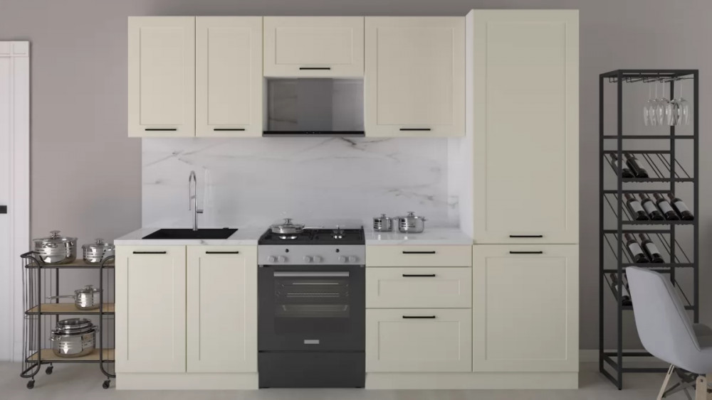 В СТОИМОСТЬ НЕ ВКЛЮЧЕНО: СТЕНОВАЯ ПАНЕЛЬ, СТОЛЕШНИЦА, БЫТОВАЯ ТЕХНИКА, МОЙКА, СМЕСИТЕЛЬ, АКСЕССУАРЫ.