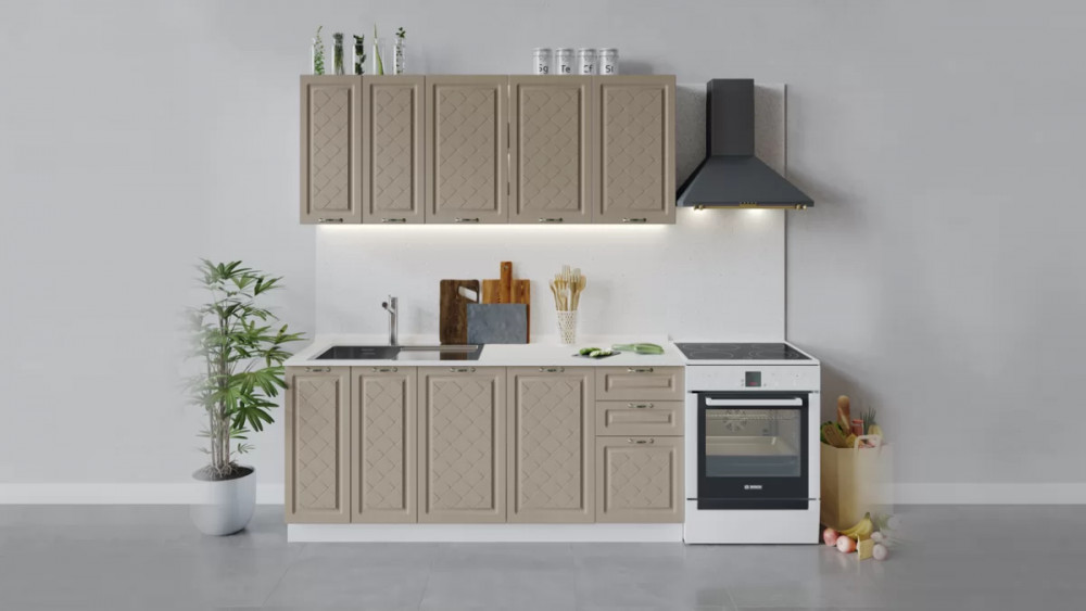 В стоимость не включено: Стеновая панель, столешница, доводчики, бытовая техника, мойка, смеситель, аксессуары
