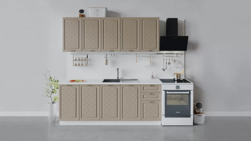 В стоимость не включено: Стеновая панель, столешница, доводчики, бытовая техника, мойка, смеситель, аксессуары