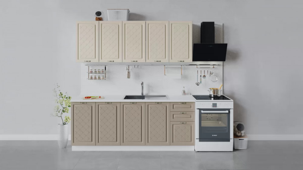 В стоимость не включено: Стеновая панель, столешница, доводчики, бытовая техника, мойка, смеситель, аксессуары