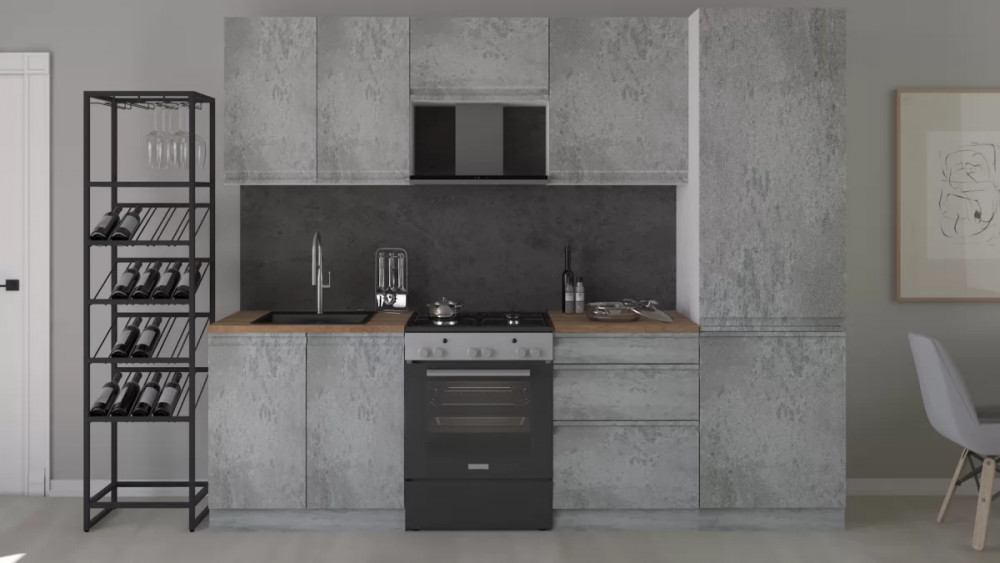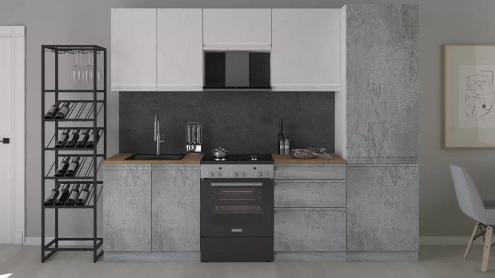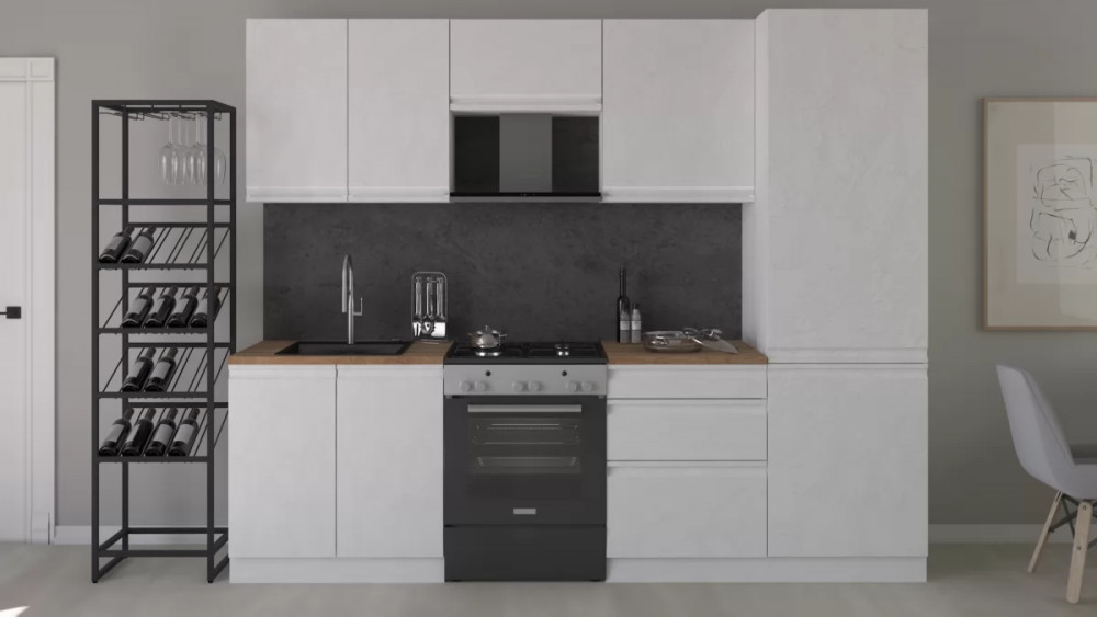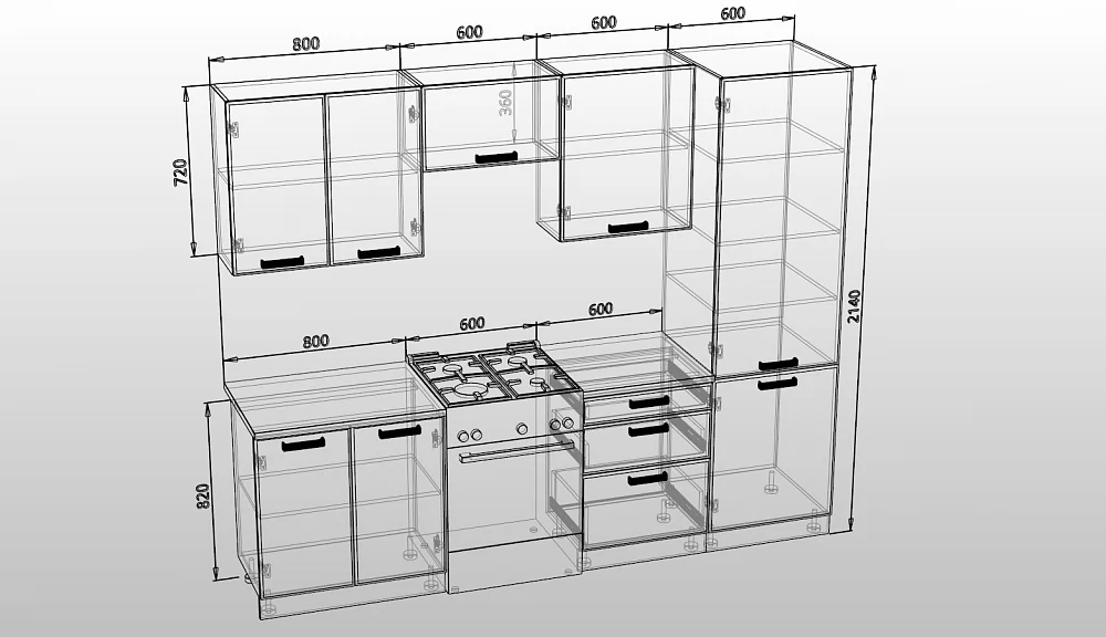 Габаритный размер готового набора модулей с учетом газовой плиты на 60см: 260 см.