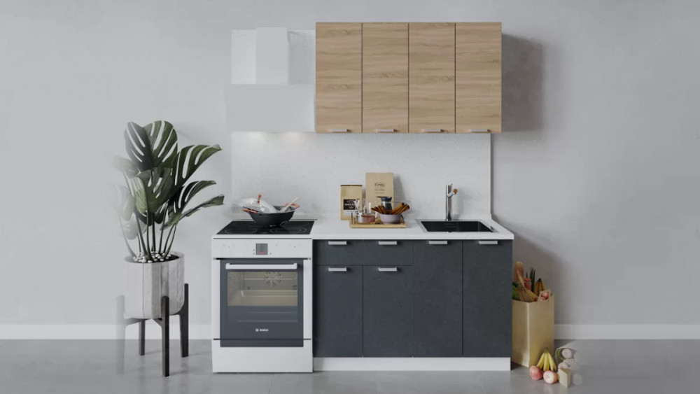 Модульная кухня «Гранита» Дуб крафт золотой/Бетон снежный/Бетон графит